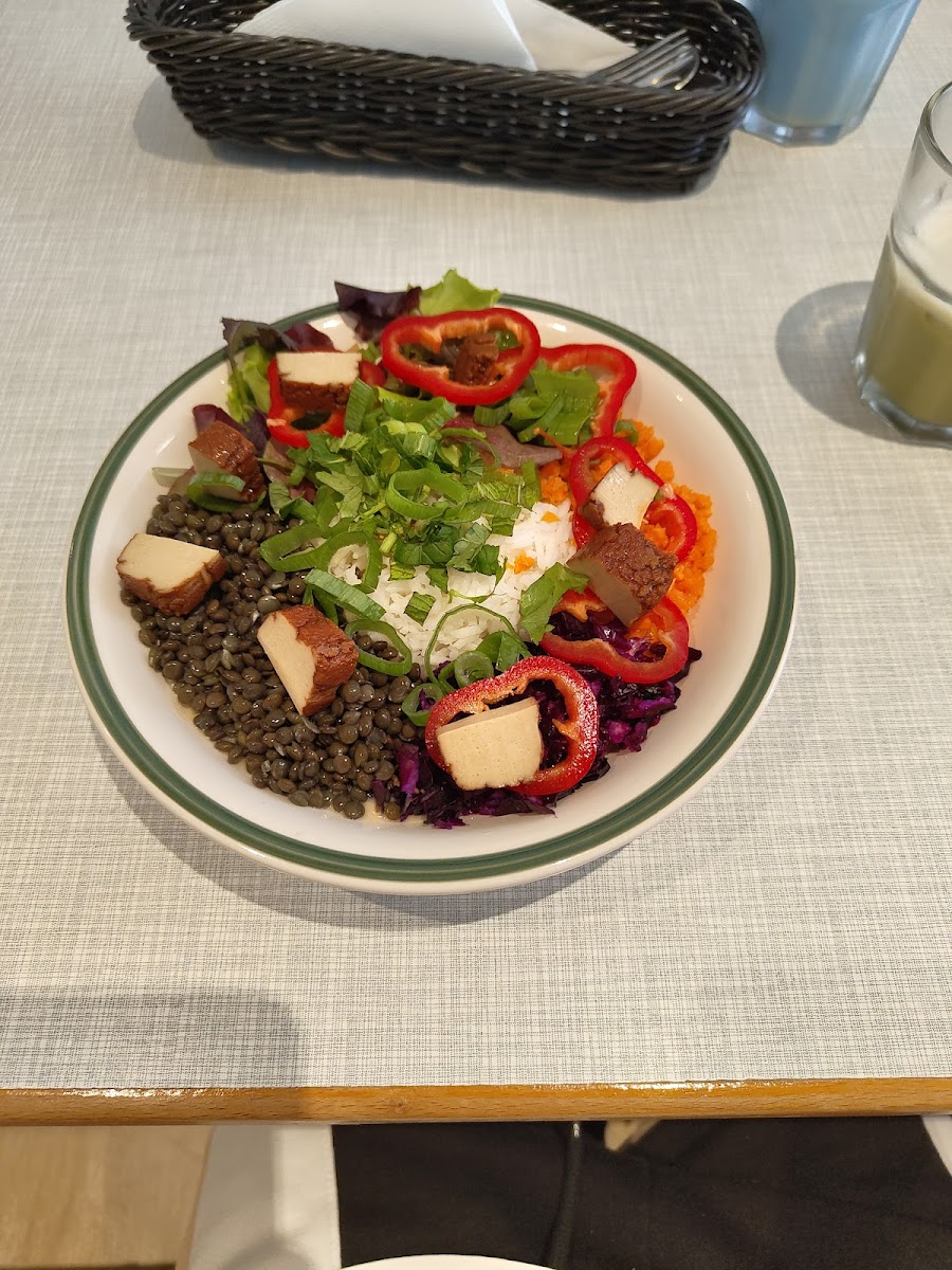 Sehr schönes veganes Restaurant in zentraler Lage mit leckerem Essen und sehr freundlicher Gastgeberfamilie. So geht man gerne essen Vorspeise, Hauptgang und Nachtisch waren sehr lecker. Kinderstuhl und Kaufladen zum Spielen vorhanden. Kartenzahlung nicht möglich. Es gibt einen Kleidertausch-Ständer. Tolle Idee. Mehrweg-Verpackung möglich .